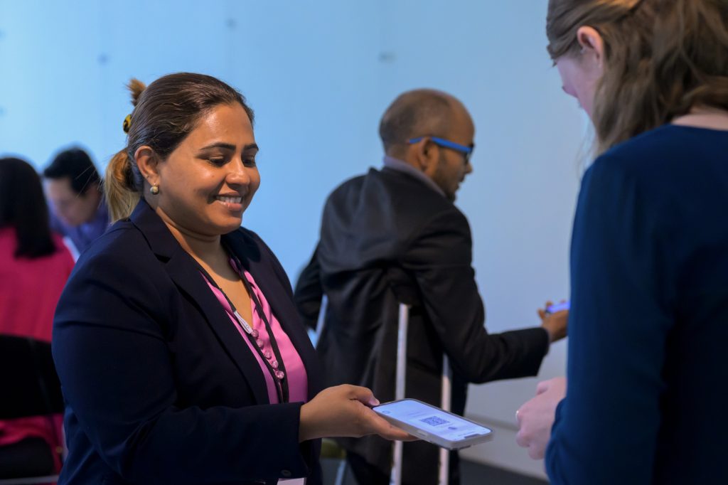 Aishath networks with other participants at the 2023 Scholars Symposium in Adelaide.